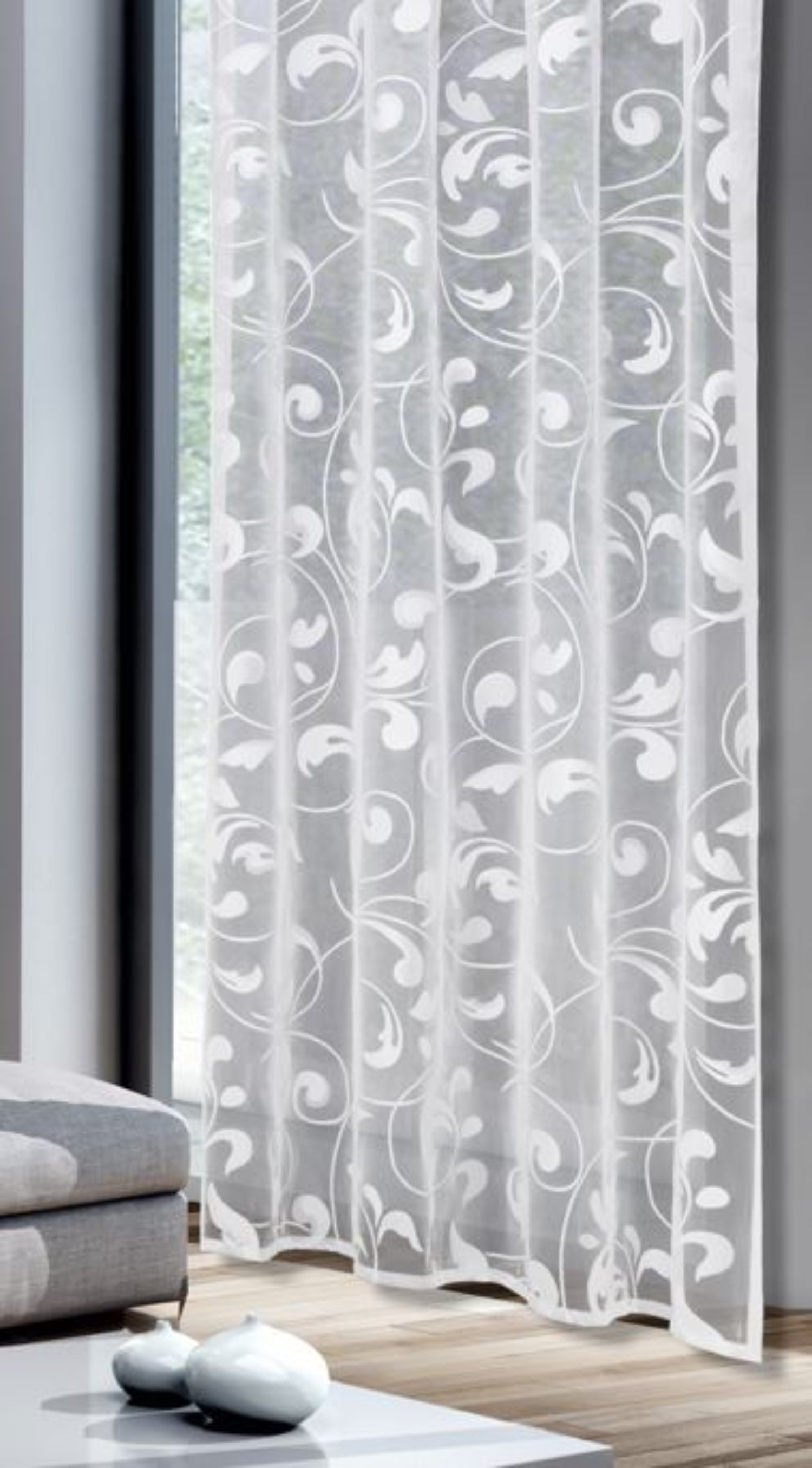 - Hochwertiges Jacquard-Gewirke mit elegantem Ranken-Muster – transparent und lichtdurchflutend