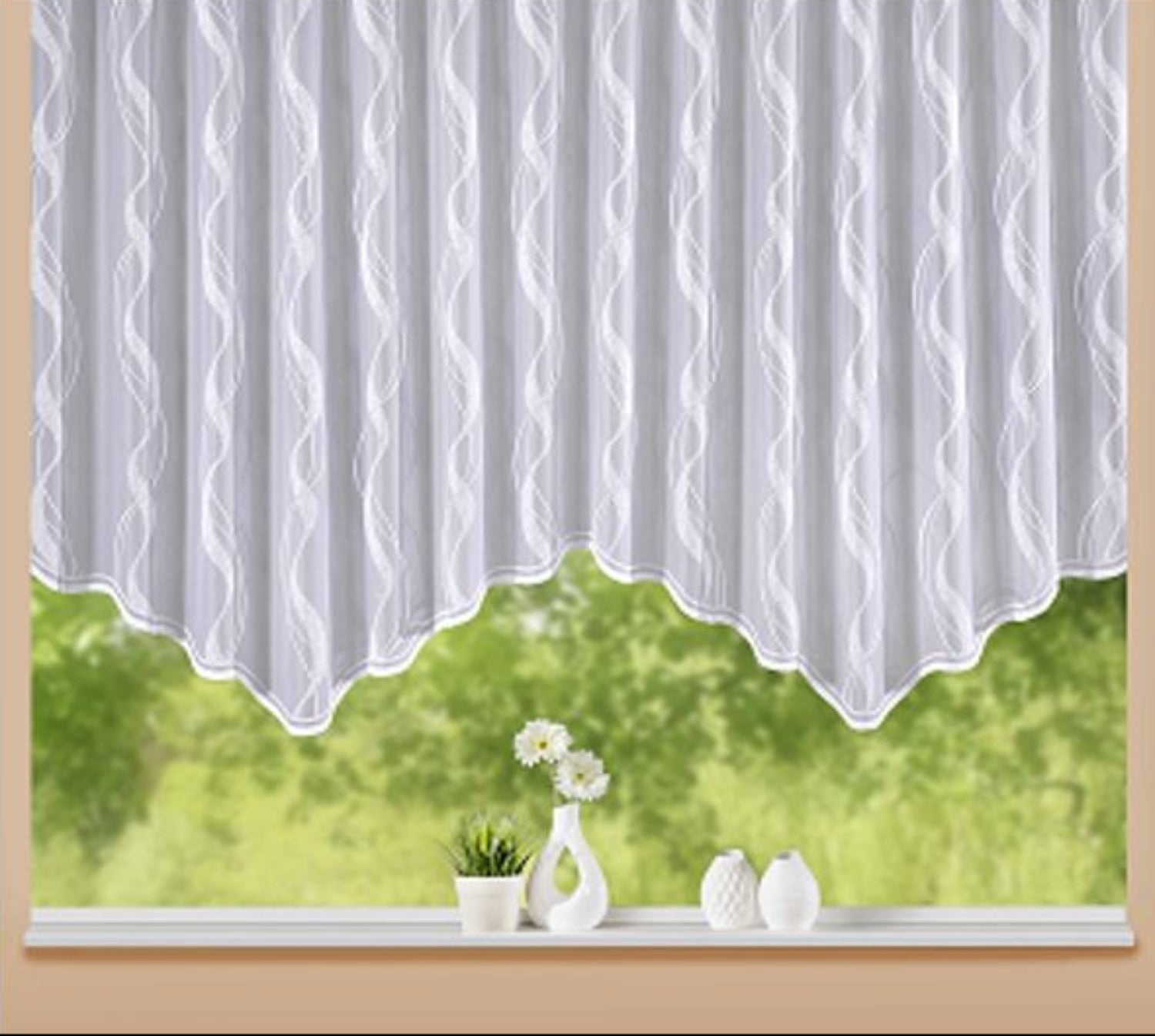 Fertigstore „Wellenbogen" weiß – Jacquard Gardine von Albani