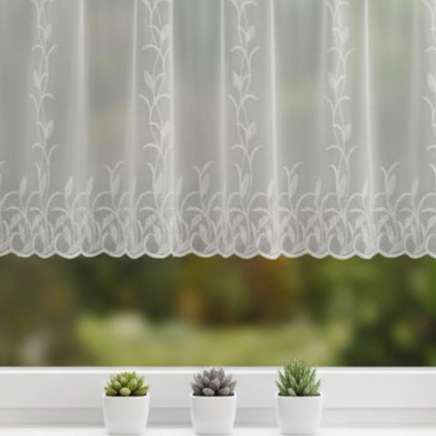Jacquard Blumenfensterstore Ranke weiß - Fertigstore von Albani