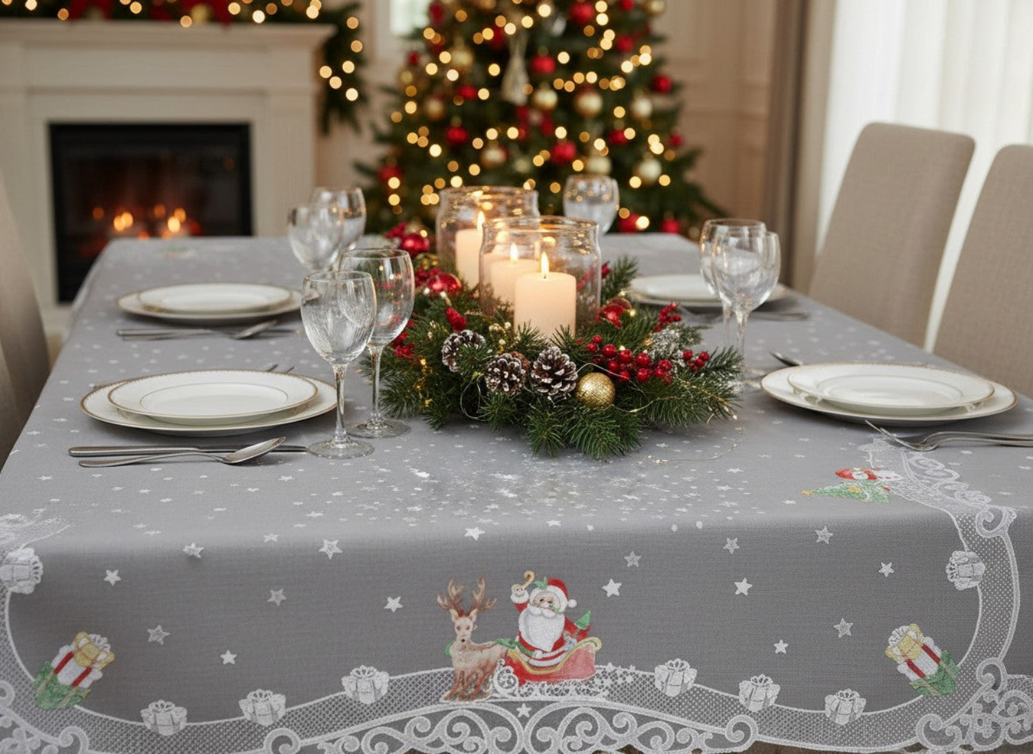 Schaffen Sie unvergessliche Weihnachtsmomente - diese Tischdecke macht Ihren festlich gedeckten Tisch zum perfekten Rahmen für besinnliche Stunden mit Ihren Liebsten.