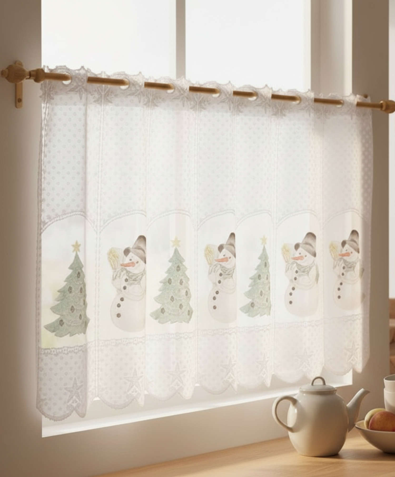 Panneau "Schneemann" - Bezaubernde Weihnachtsgardine für Küche & Kinderzimmer