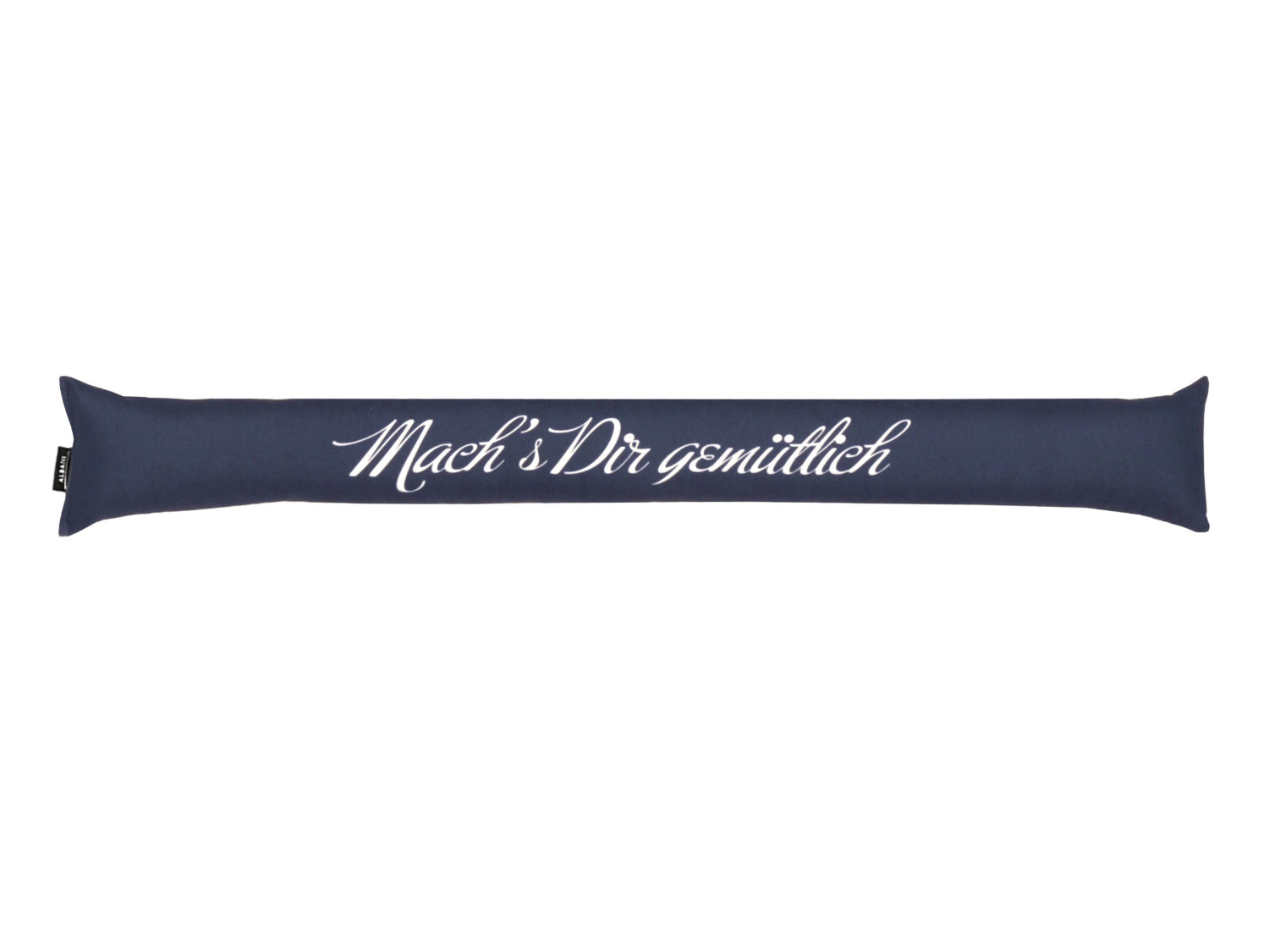 Zugluftstopper "Mach's dir gemütlich" blau 10x90cm – Schutz gegen Zugluft